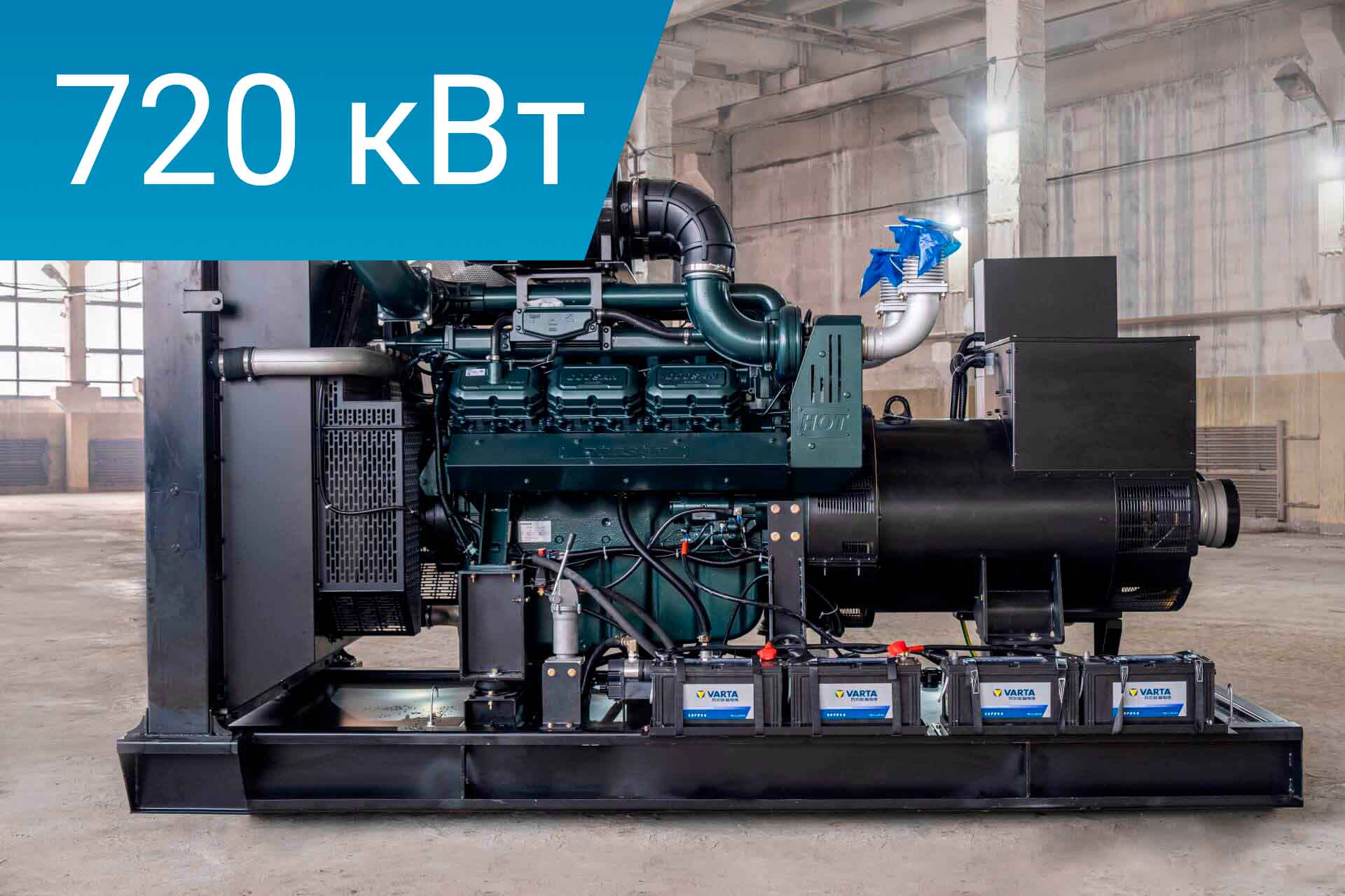 - Энергоэффективность и надежность: Генераторы мощностью 720 кВт отличаются высоким коэффициентом полезного действия, что обеспечивает минимальные потери энергии и надежное питание вашего объекта.